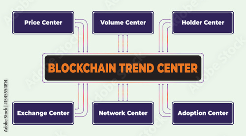 Blockchain trend center diagram showcasing key aspects of digital currency