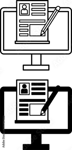 Blog Icons. Black and White Vector Icons of Blogger Website, Pencil, and Computer. Publication in the Commercial Blog. Blogging. Social Media and Networking Concept