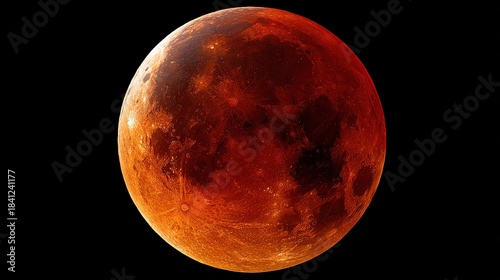 Blood moon during total lunar eclipse in vast cosmic space