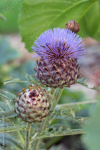 Blooming cardoon with purple florets (Cynara cardunculus).