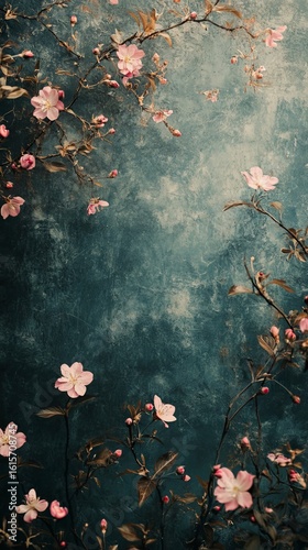 Blooming Cherry Blossoms on a Textured Backdrop Calm Floral Display