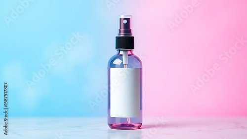 Blue and pink argan oil spray bottle for healthy hair care on clean background