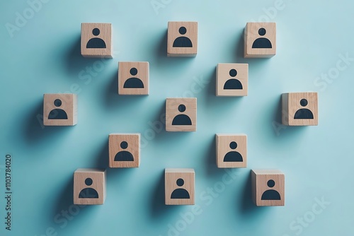 Blue Background Flat Lay Wooden Cubes, Community Connection System