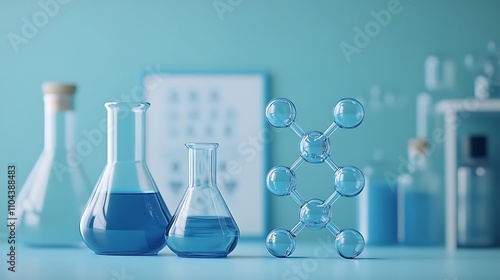 Blue background with the elements of a vintage chemical elements glasses