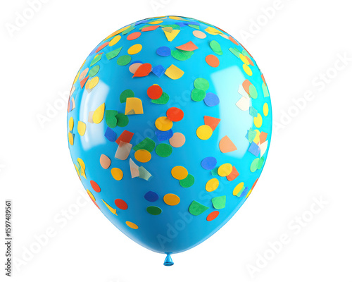Blue balloon confetti colorful party celebration festive decoration isolated cheerful vibrant. Blue balloon with colorful confetti festive decoration for party or celebration isolated transparency