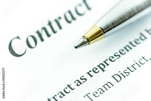 Blue ballpoint pen on a contract, ready to sign and fill a form.