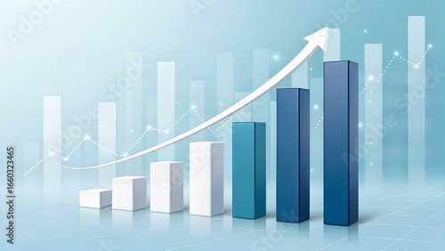 Blue bar graph with upward arrow on grid background – Growth, Analytics, Progress, Data, Strategy, Conceptual