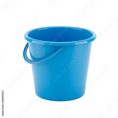 Blue bucket with a handle sits isolated on white or transparent background. PNG