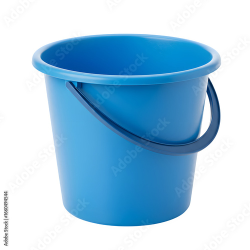Blue bucket with a handle sits isolated on white or transparent background. PNG