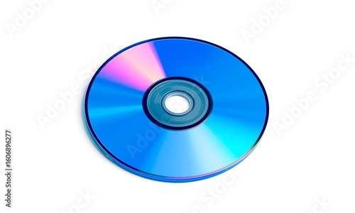 Blue C D- R O M optical disc with a reflective surface on a white background isolated studio shot