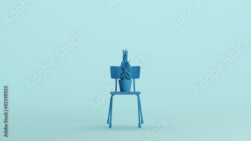 Blue chair plant vintage school seat soft tones pale background 3d illustration render digital rendering