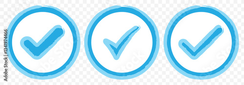 Blue check mark tick verification icon symbol vector. Set of profile verification vector icons. Sticker or badge of blue verification account. Original profile. Vector EPS 10.