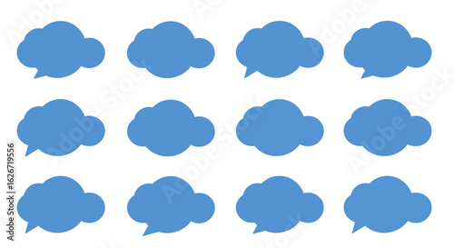 Blue Cloud Speech Bubbles Arranged in a Grid Pattern on White Background