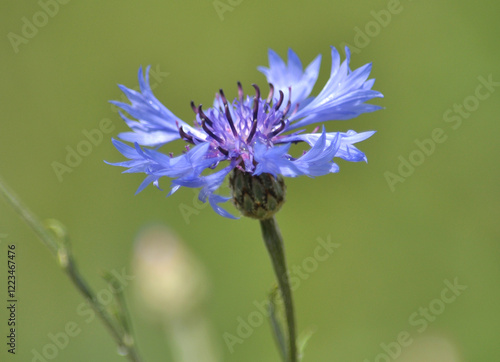 Blue cornflower (Centaurea cyanus) blooms in the field