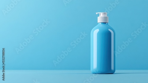 Blue Cosmetic Bottle on Solid Background with Pump Dispenser