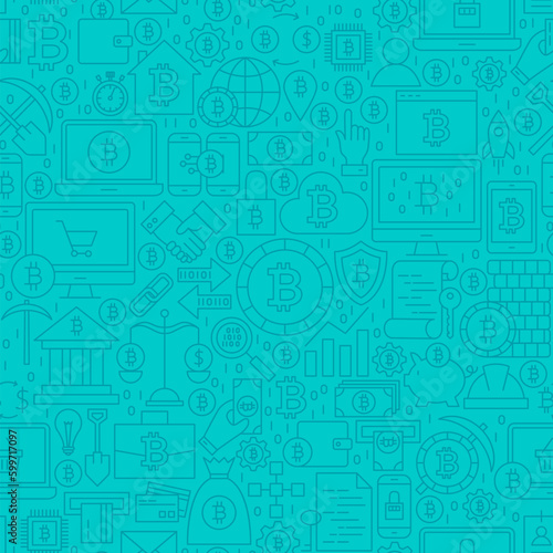 Blue Cryptocurrency Line Tile Pattern. Vector Illustration of Outline Tile Background. Bitcoin Financial Items.
