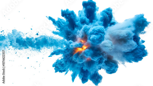 Blue explosion of flame, smoke, and sand transparent background