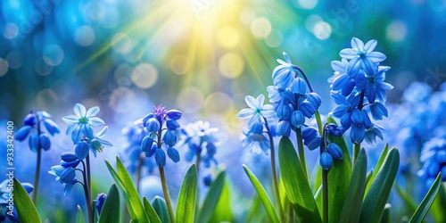 Blue flowers blooming in a spring garden with a blurred bokeh background, blue, flowers, spring, garden, bokeh, nature, flora