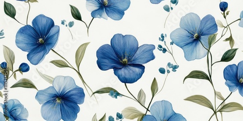 Blue Flowers White Background