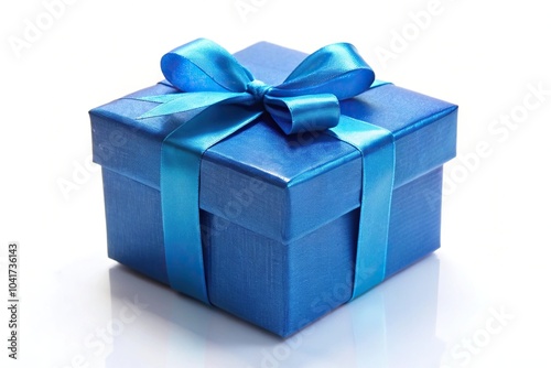 Blue gift box at tilted angle on white background