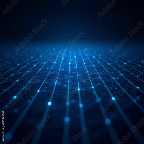 Blue Grid With Glowing Lines On A Dark Background