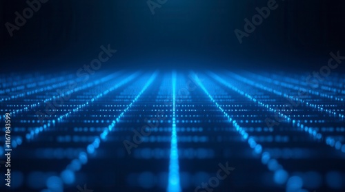 Blue Grid With Glowing Lines On A Dark Background