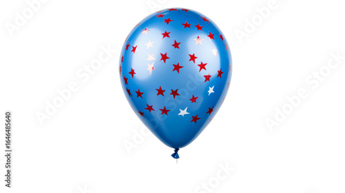 Blue Helium Balloon with Red and White Stars Isolated on White Background, cut out transparent