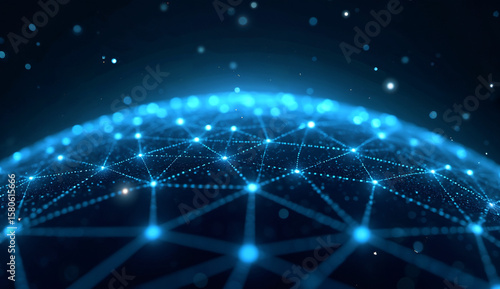 Blue Illuminated Network Sphere with Interconnected Dots and Lines