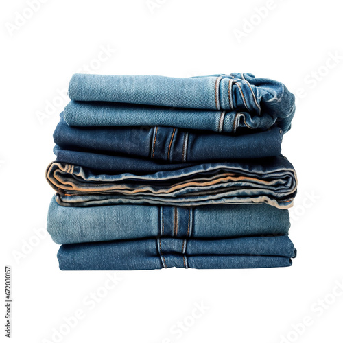 Blue Jeans Folded Stack on transparent background PNG Generative AI