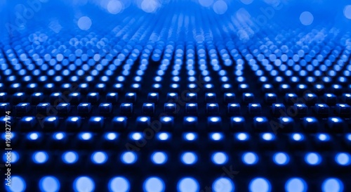 Blue LED lights panel close-up shot, modern technology background