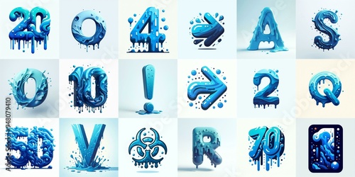 Blue Lettering Typeface. AI generated illustration