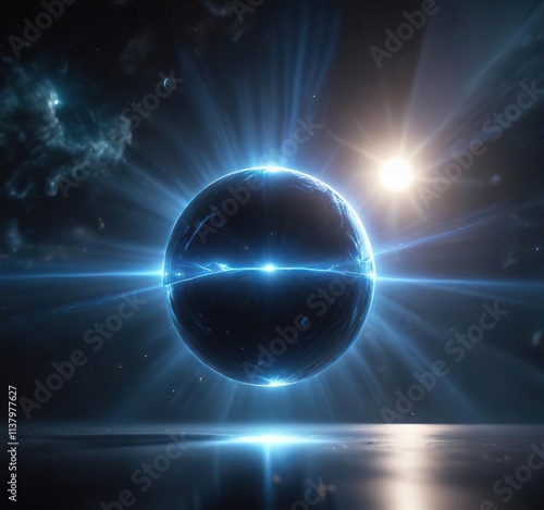 Blue light rays emanating from a mystical orb in space, glow, rays, mystical orb