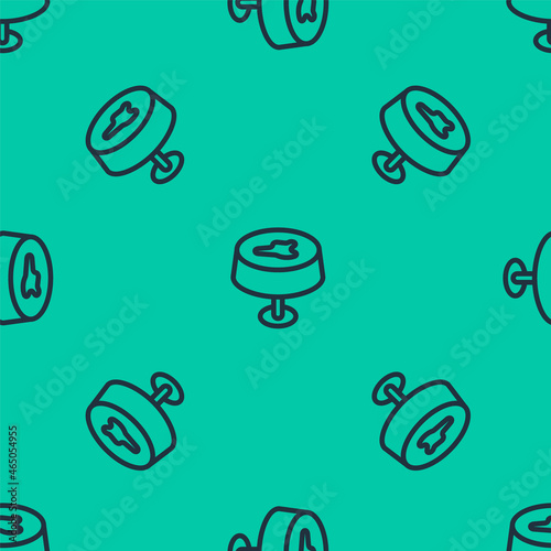 Blue line Stain on the tablecloth icon isolated seamless pattern on green background. Vector