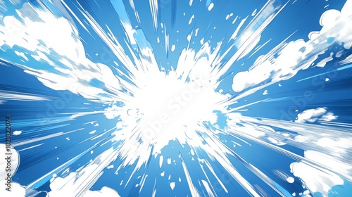 Blue manga action frame lines, an explosive retro comic style. -