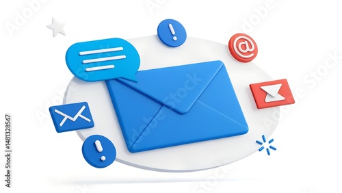 blue message 3d icon notification concept isolated