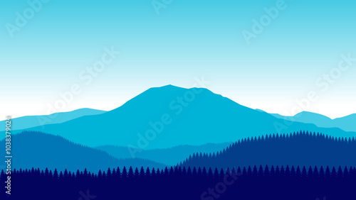 Blue mountain landscape wallpaper in a minimalist flat design style. Minimalist beauty background for desktop and wallpaper