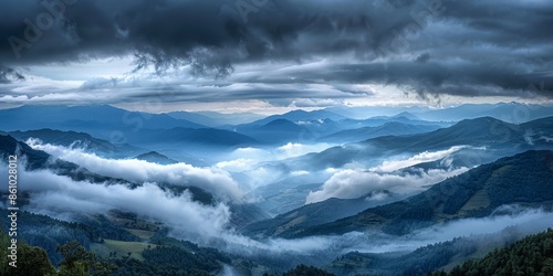 Blue mountain landscape with clouds