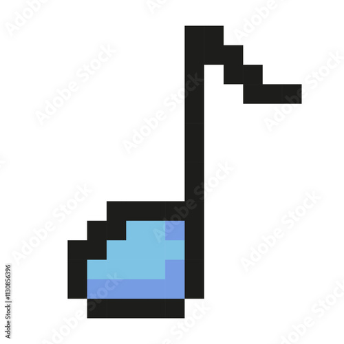 Blue note pixel art symbol isolated on a white background. Vector 8 bit illustration.
