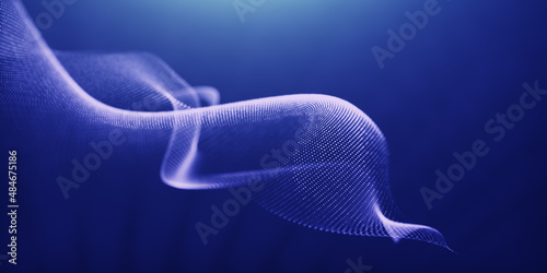Blue particles wave background. Abstract dynamic mesh. Big data technology. line wave light glowing effect particular background.