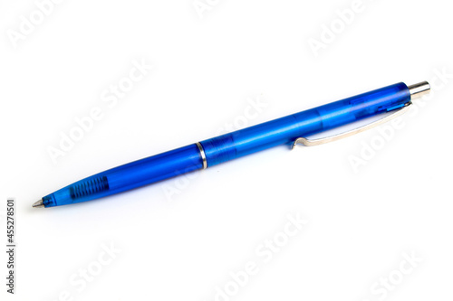 Blue pen isolated on the white background