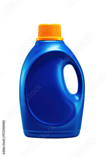 Blue plastic container with orange cap isolated on a transparent background bottle liquid