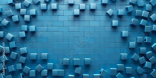 Blue Plastic Toy Blocks Forming a Blank Wall Structure Background. Concept Toy Blocks, Blue Plastic, Blank Wall, Background, Structure