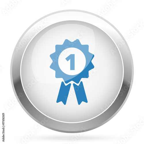 Blue Prize Ribbon icon on white glossy chrome app button