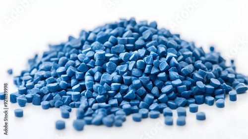 Blue raw plastic pellets Background Close-up Plastic granules Polymer plastic beads resin polymer