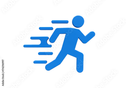 Blue running man PNG isolated on transparent background, fast delivery or speed concept for business and sports