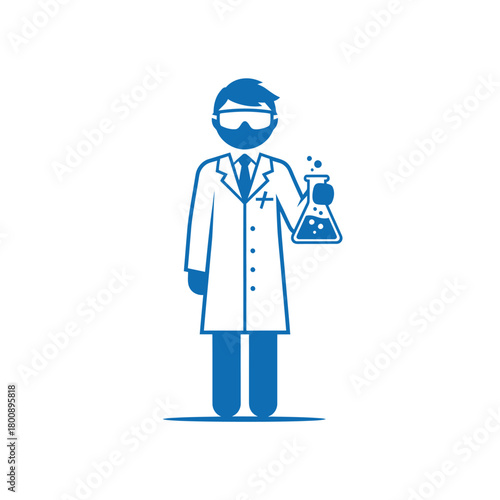 Blue Scientist Icon Holding Beaker in Lab Coat.