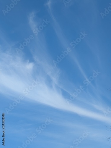 Blue Skies with wispy chemtrail aeroplane lines and fluffy white clouds