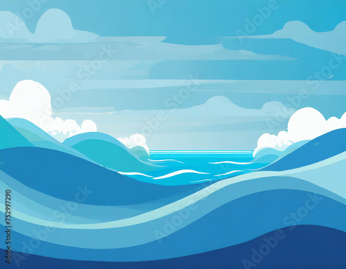 blue sky background A set of water waves in different shapes and sizes, representing the sea and the ocean.