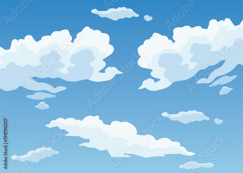 Blue Sky Background with Soft White Clouds Minimal Flat Vector Illustration