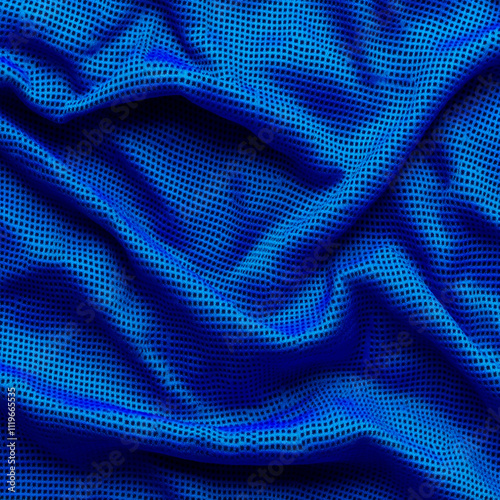 Blue sports clothing fabric football shirt jersey texture isolated on white background.